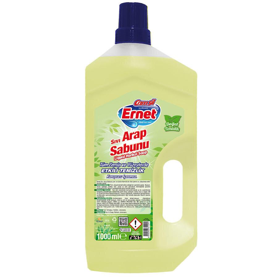 Ernet Sıvı Arap Sabunu yeni ve üstün formülü ile tüm zemin ve yüzeylerde etkili temizlik sağlar.