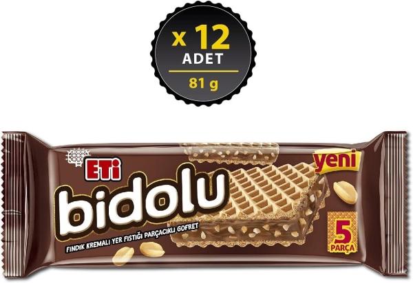 Eti Bidolu Fındık Kremalı Yer Fıstığı Parçacıklı Gofret 81 Gr 12 Adet