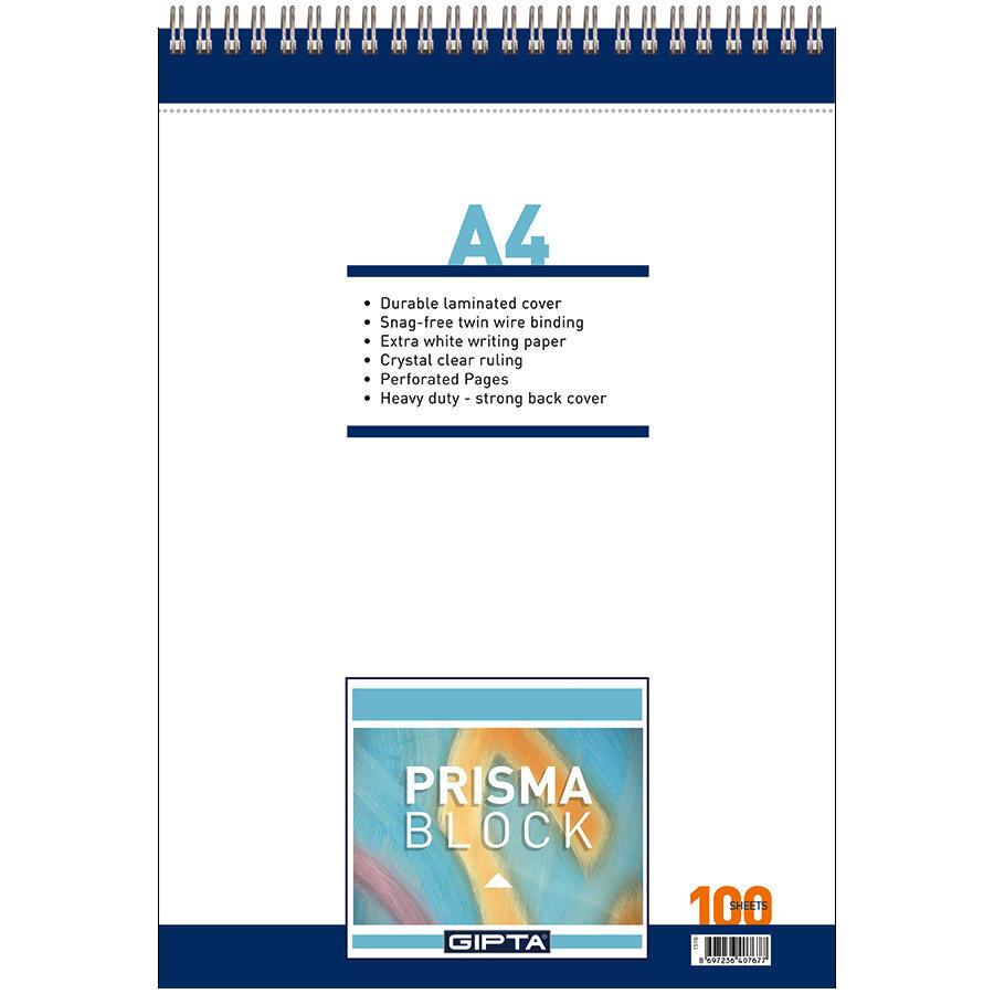 Gıpta Prisma Bloknot kaliteli hamurdan üretilmiştir. Her biri 60 gram olan 100 yapraktan oluşur. Sert arka kapağı sayesinde defteriniz buruşmaz ve şıklığını daima korur. Gıpta Prisma Bloknot çizgisiz ve A4 boyutundadır.