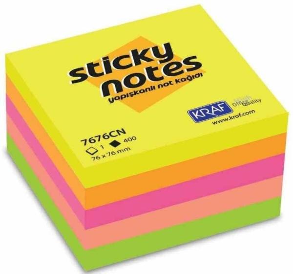 Kraf Yapışkanlı Küp Not Kağıdı 76x76 Neon 7676CN