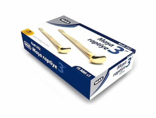 • Ürün Kodu: Mas-352• Materyal: Pirinç Kaplama• Ebat: 3\'\'/ 75 mm• Kutu İçinde: 15 adet• Harita, not kağıdı vb. şeyleri mantar pano benzeri materyallere tutturmaya yarar.Sağlam, dayanıklı ve şık tasarım.