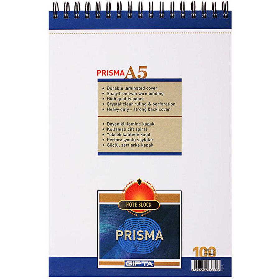 Perforasyonlu spiral ile bloke edilmiş olan Gıpta Prisma bloknot çizgisiz A5 100 yaprak sayfaların ayrılması bakımından oldukça pratiktir. Çift spiral ile aynı zamanda sayfaların dağılma, kopma ve benzeri sorunlarında önünü almaktadır.