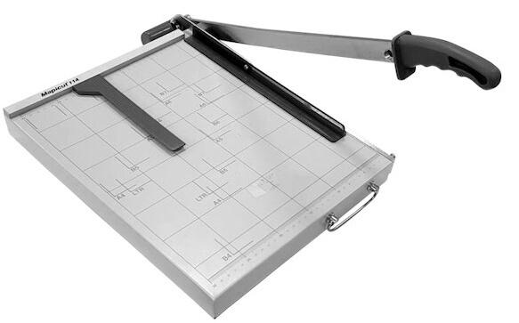 Mapicut 114 B4 Giyotin • Ürün Kodu: 3040114• Kesme Kapasitesi: 15 Yaprak• Tabla Ölçüsü: B4+ A4• Kesme genişliği: 33 cm• Ölçüler: 600x490x350 mm• Sıkıştırma: Mıknatıslı Manuel• Ağırlık: 1 Kg• Garanti: 2 Yıl• Özel çelik malzemeden üretilmiş bıçaklar ve diyagonal ölçümlü tablasıyla ekonomik bir giyotindir. Küçük ve orta ölçekli kullanımlara uygun kişisel ofis tipi kollu giyotindir. lnç ve metrik cetvel, parmakları bıçaktan uzak tutan koruyucu bar ve bıçak kilidi başlıca öne çıkan donanım özellikleridir.